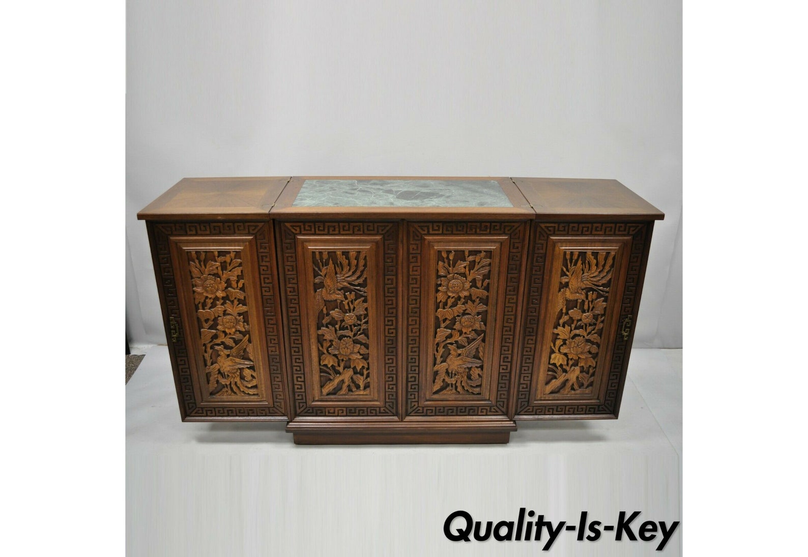 Behind the diamond inlay pattern doors with shapely wooden pulls you'll find dual racks for up to. Let us show you how to properly measure your space! Compartments and drawers for glasses and bottles and a.