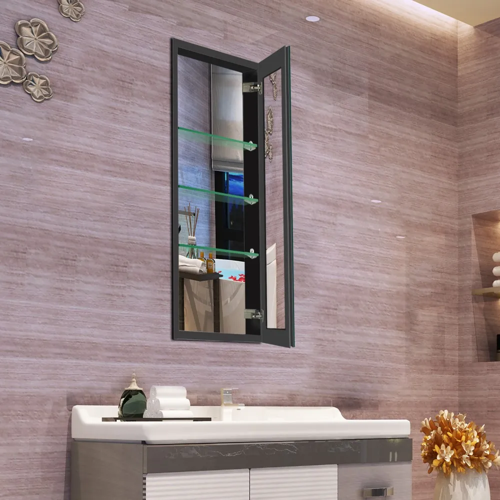 If your medicine cabinet is recessed into the drywall, please order a sample first. The two adjustable interior shelves allows for storage of all your toiletries. Black floor mounted medicine cabinet mirror cabinet gbw024. Open its door to the left or right (your choice) to reveal three glass shelves for storing unsightly essentials.