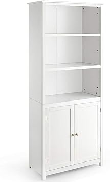 Modern bookshelf in matt white finishing. You can read real customer reviews for this or any other bookcases and even ask questions and get answers from us or straight from the brand. It has a crown top, a bottom cabinet with 2 full doors, an upper one with 2 glazed doors.