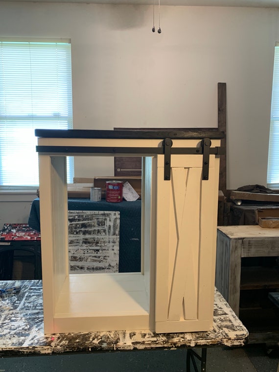 The cabinet bar is made out of bright birch wood with a countertop made out of stainless steel, giving it a contemporary look. Custom build farmhouse style mini fridge cabinet for those mini fridges that need a cabinet but are limited on space! And the top is nice and big for a coffee maker and serving snacks from.