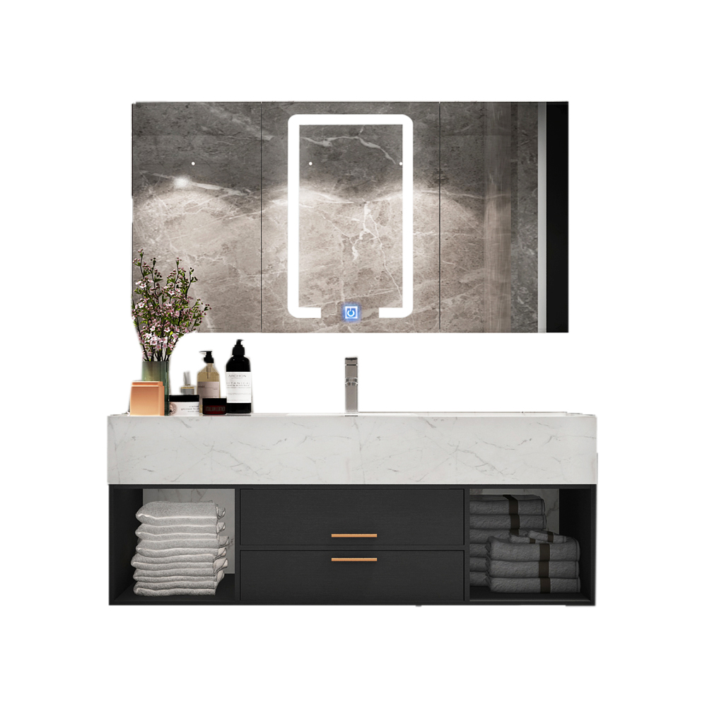 Start your mornings with a touch of elegance using this freestanding vanity unit, which features a marbled top ideal for holding makeup, skincare and other toiletries.