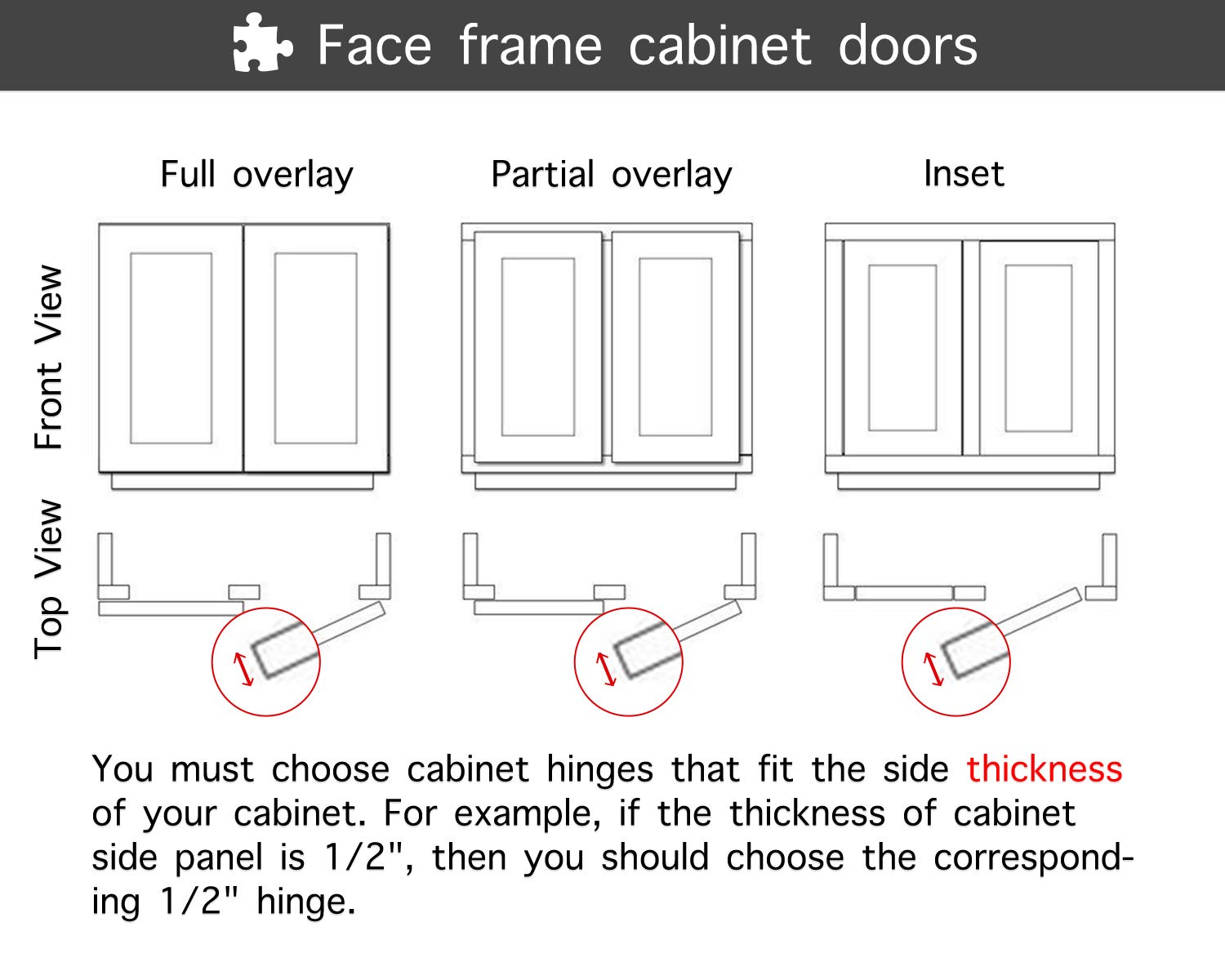 These hinges attach to the inside of the doors and to measure the overlay, place the cabinet door where it will go once you install the hinges. I opted for full overlay cabinets in my laundry room, basement bar, and. The overlay refers to the size or type of the door, the hinge, or how the cabinet is built. To achieve a full overlay effect (the doors and drawers cover most of the cabinet frames) on a framed cabinet we recommend you use a hinge overlay overlay refers to how much the door overlaps on the hinge side.