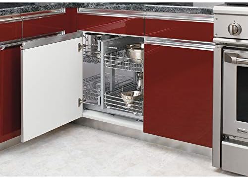 Images. Blind corner organizers help you get your stored items pulled out for easy access. The rounded shape of the shelves allows for various types of storage from mixing bowls many cabinet manufacturers have units available to fit a blind corner cabinet.