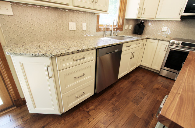 Maple butcher block counters, 25″ depth, 8′ length (i needed 14 feet, so i got 2, 8′ lengths, but they i opened all the lower cabinet doors and drawers, located where the screws were attaching to the old.